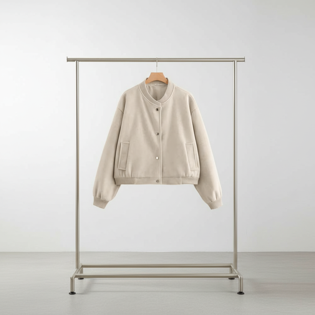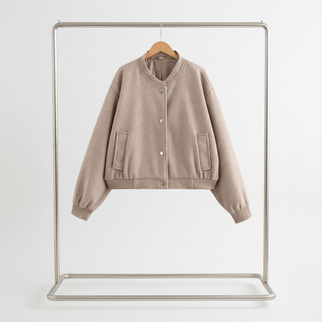Poczuj się komfortowo i stylowo w tej eleganckiej kurtce typu bomber. Wykonana z gładkiej, wytrzymałej tkaniny, oferuje zarówno wygodę, jak i nowoczesny styl. Ściągacze przy mankietach i u dołu zapewniają idealne dopasowanie, a zapięcie na guziki i funkcjonalne kieszenie dodają jej praktyczności i stylu. Jej uniwersalny krój sprawia, że ​​idealnie nadaje się do noszenia na co dzień, zarówno na nieformalne wyjścia, jak i do eleganckich stylizacji.